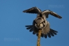 Die Sperbereule ist im Gegensatz zu vielen anderen Eulenarten vorwiegend tagaktiv, jagt aber auch in der Dämmerung. Kleinsäuger spielen eine übergeordnete Rolle im Beutespektrum.